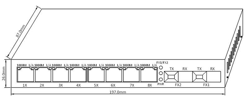 8個千兆電口+2個千FX光口以太網交換機,支持810/100/1000Base-T電口和21000Base-X光口。它將網絡傳輸距離的極限從雙絞線的100米擴展到了100公里以上產品符合FCC、CE標準,非網管機型,即插即用,無需配置,使用簡單方便。