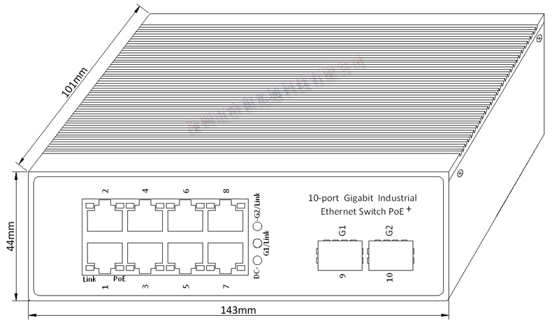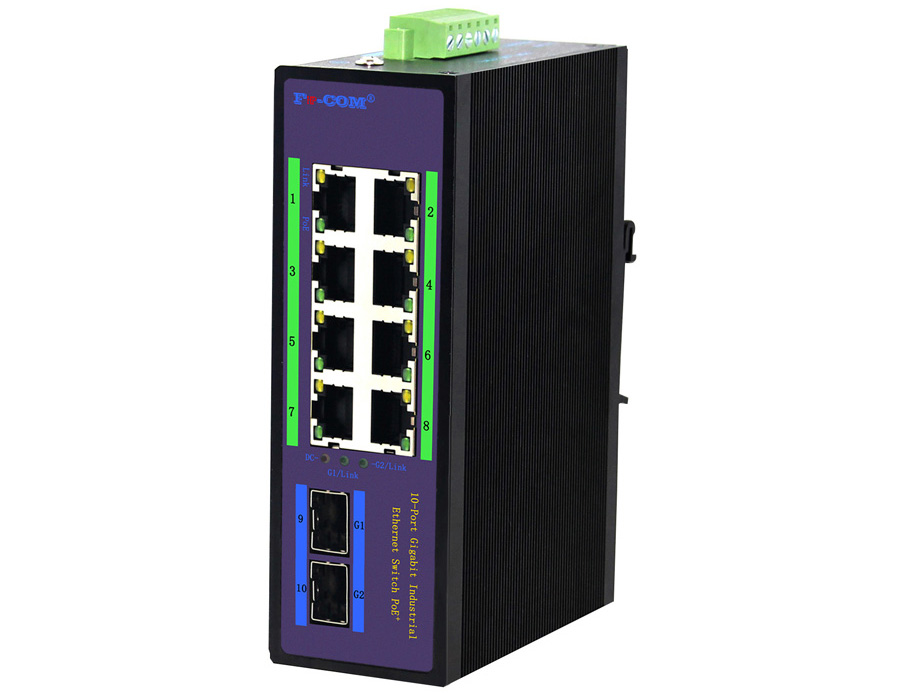 8路千PoE電口+2路千兆SFP光口工業級以太網PoE交換機,支持8個10/100/1000Base-T(X)電口和21000Base-X光口。產品符合FCC、CE標準。FIG28P-SFP交換機具有-40℃~85℃的工作溫度,具有超強的堅固度能適應各種嚴苛環境,也可以非常方便的安置在空間緊湊的控制箱中。導軌的安裝特性、寬溫操作及擁有IP40防護等級的外殼及LED指示燈,使FIG28P-SFP成為一個即插即用的工業級設備,為用戶的以太網設備聯網提供可靠、便捷的解決方案。