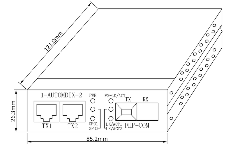 2個百兆電口+1個百FX光口以太網收發器,支持210/100Base-TX電口和1100Base-FX光口。它將網絡傳輸距離的極限從雙絞線的100米擴展到了100公里以上產品符合FCC、CE標準,非網管機型,即插即用,無需配置,使用簡單方便。