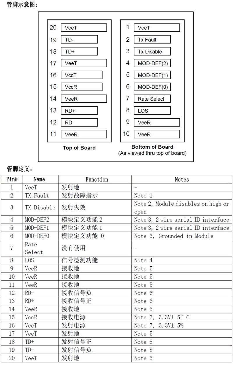 7. VccR and VccT:發射與接收的供電電源管腳